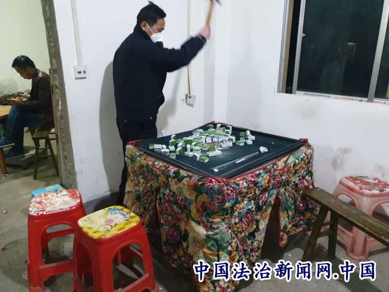 黎平县高屯街道派出所捣毁一起聚众赌博窝点 砸毁麻将机5台