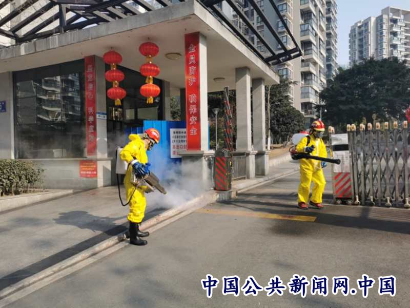 2月19日,江油市公安局中坝派出所涪滨社区警务室民警罗培学组织滴水公益志愿者服务队,用时4小时对辖区内小区公共场所、人员进出大门、车辆进出通道,进行全面消毒,确保辖区公共防疫措施落实,受到辖区群众一致好评。(江公轩)