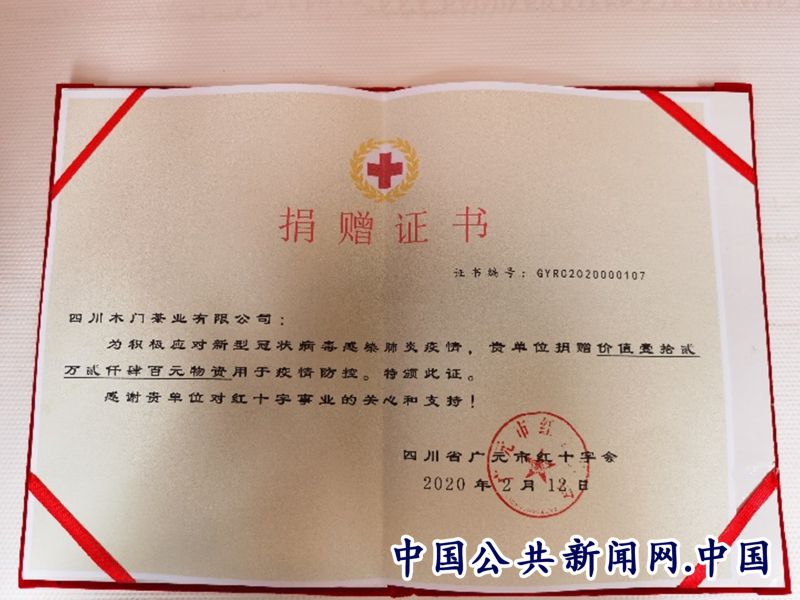 木门茶业公司向广元市红十字会定向捐赠价值122400元物资