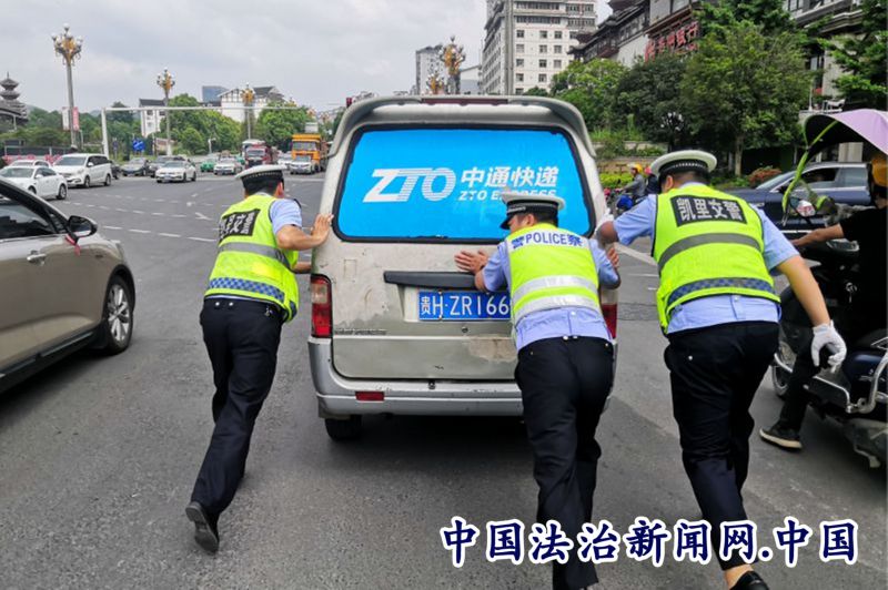 贵州凯里:车辆“罢工”停路中 交警推车保畅通