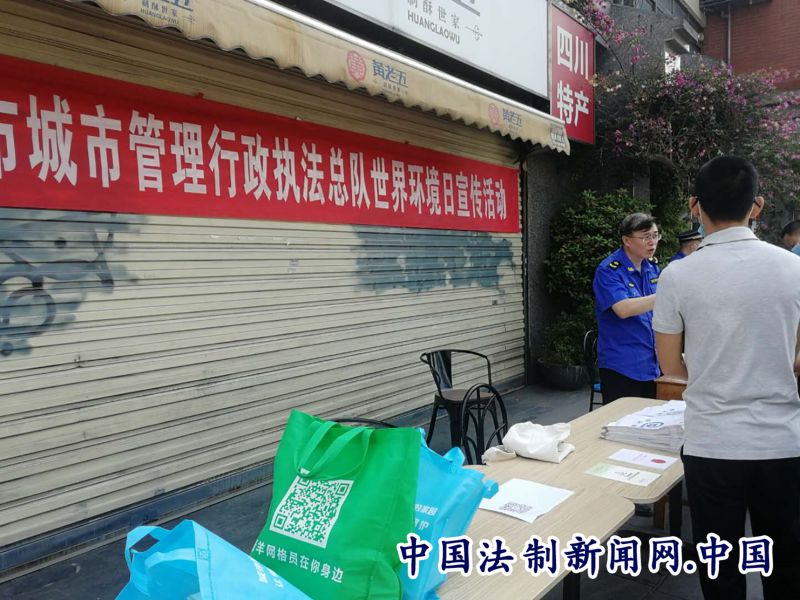 全民公众讯(冯清亮 李文兰)2020年6月5日上午,成都市城市管理执法总队与青羊区城市管理综合行政执法大队、青羊区少城街道办事处在宽窄巷子金河路20号联合开展6.5世界环境日暨环保普法宣传活动。