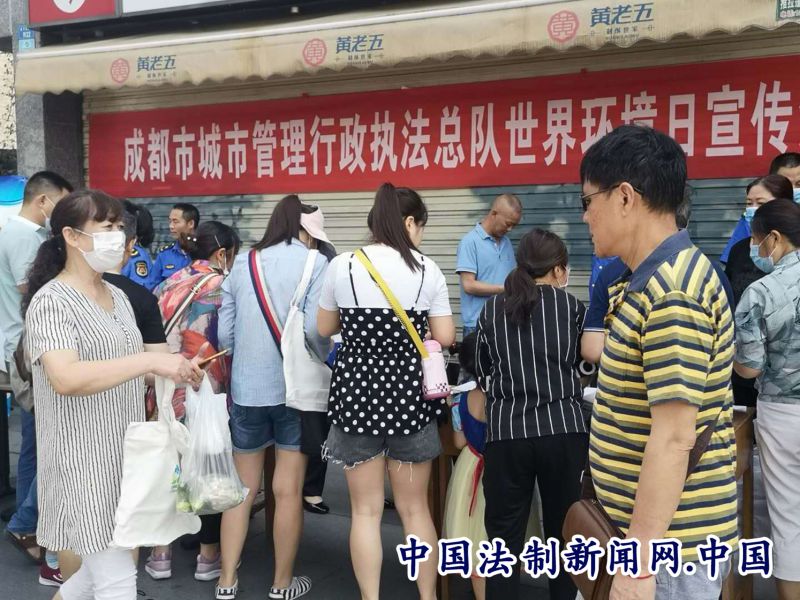 6月5日上午,成都市城市管理行政执法总队、青羊区城市管理综合行政执法大队、少城街道执法中队联合在人流量密集的宽窄巷子入口处联合开展6.5世界环境日环保普法宣传活动。