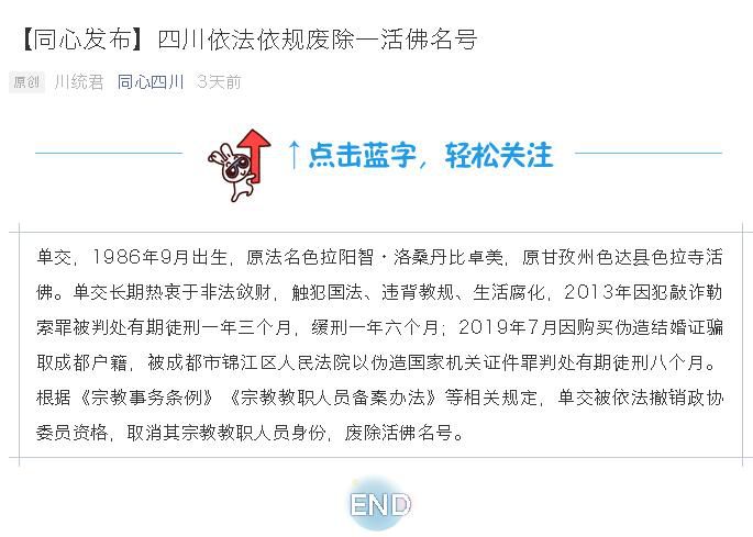 四川依法依规废除一活佛名号:触犯国法、违背教规、生活腐化