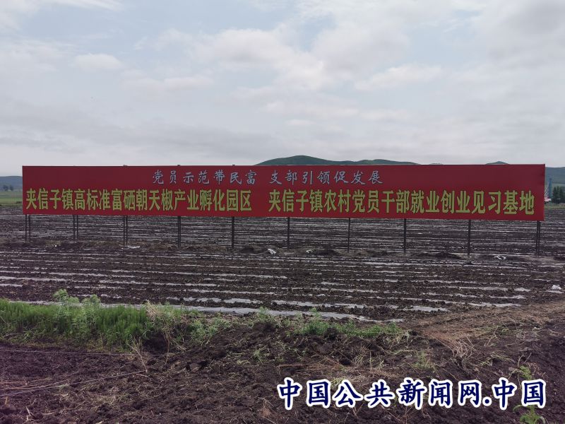 夹信子镇勇进村勇跃屯高标准富硒朝天椒产业孵化园区主任王义信说:“眼下,200万株朝天椒苗全部移栽到600亩土地里。待朝天椒峥红58成熟后,将由山东济宁市昂扬进口商贸有限公司统一进行收购。一垧地产湿椒5万斤,产干椒1万斤,湿椒每市斤1.2元,干椒每市斤11元。今年我们开展的‘党员创业带富工程’,首先是统一支部党员思想,通过党员带头,发动群众,因地制宜在耕地上轮作高效经济作物,以提高单位面积耕地效益,让农民增产增收。”
