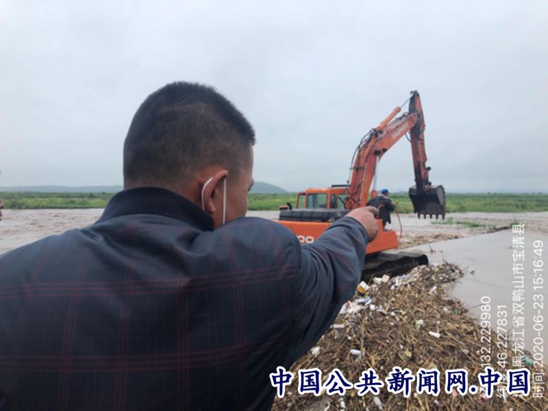 宝清县遭受特大暴雨袭击 志愿者开钩机疏通过水桥