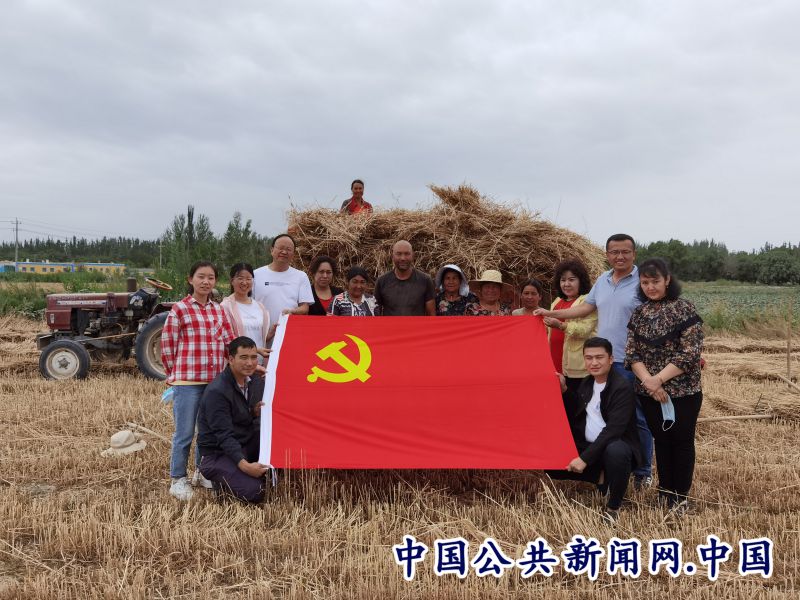 全民公众讯(张品品 李艳霞)当酽酽的夏风,熏醉金色的麦浪,满怀丰收喜悦的农人,便开始碾场,霜色和炊烟的背影里,拖拉机欢快的突突声,在烈日下奏响。近日,莎车县人民法院综合审判庭、审管办党支部书记茹先古丽·阿力木同志带领支部全体干部走出机关,深入农村,把“党日活动”的活动阵地搬到了扶贫结对帮扶点——托万吉格代村,开展 “走在田间,服务三夏”的主题党日活动。