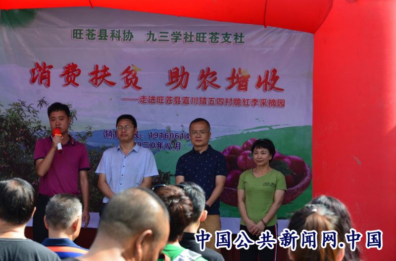 全民公众讯(杨熙坤)“真的太感谢你们了!今年我们家的脆红李不愁卖不出去了!”旺苍县嘉川镇五四村村民郝显峰激动地说不出话来。近日,旺苍县人大副主任陈三勇、副县长张红喜出席了由旺苍县科协、九三学社旺苍支社在旺苍县嘉川镇五四村开展的“消费扶贫、助农增收”活动。旺苍县科协、旺苍县农业农村局、旺苍县交易中心等20余家单位干部职工和部分家属参加活动。