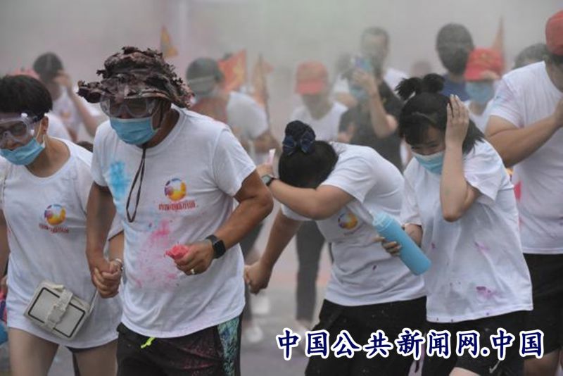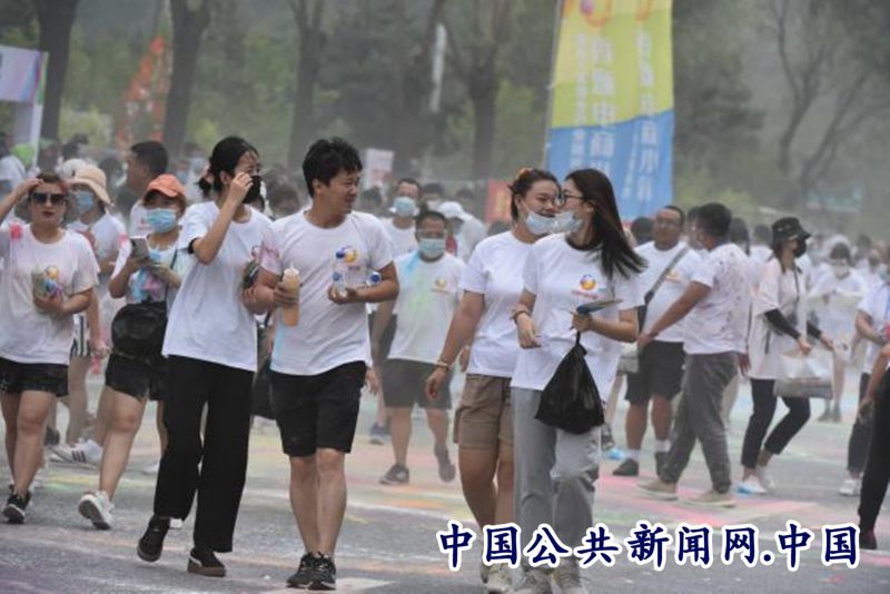 途中,一波接一波的五彩粉末铺天盖地撒下来,尖叫声、欢笑声响成一片,大家“挂彩”奔跑,拍照留念,领略沿途美景。